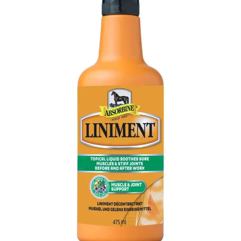 Absorbine Liquid est formulé pour les équidés – Tenir hors de portée des enfants – Bien refermer après usage – Conserver dans un endroit bien aéré, à l’écart de toute flamme ou source d’étincelle.