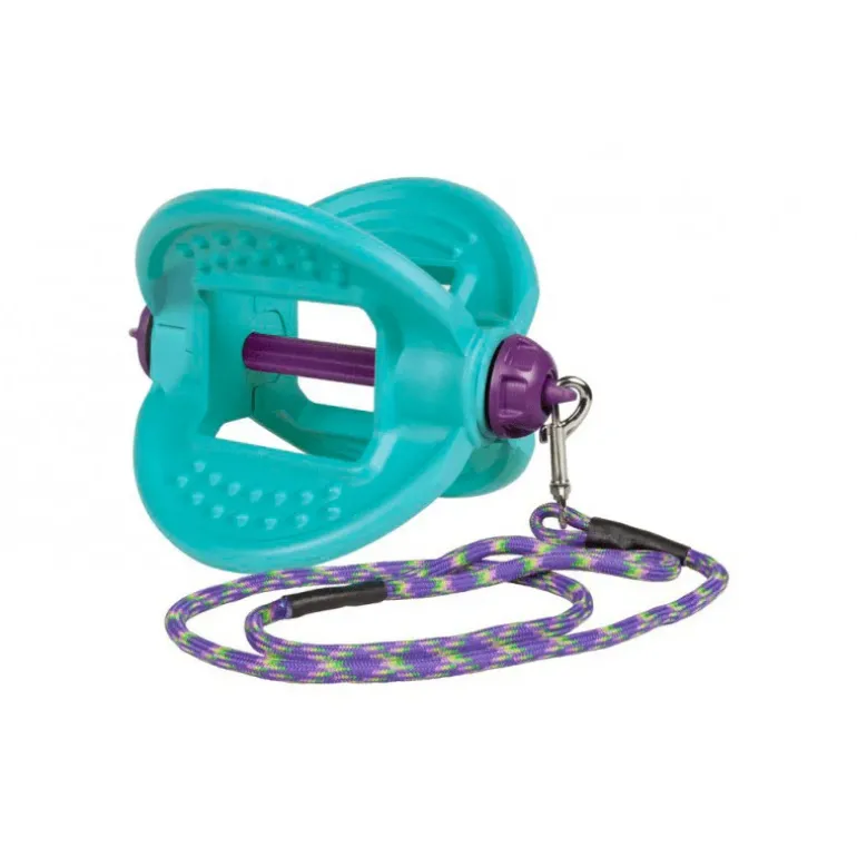 La Bizzy Ball est un jouet innovant pour le cheval ! Son design en forme d’ailes permet au cheval de pouvoir lécher sa Bizzy Ball sans que cette dernière soit au contact du sol. Grâce à sa corde fournie, elle peut être installée dans de multiples endroits : au sol, suspendue à l’aide d’une corde (corde fournie), dans le box, dans le paddock.