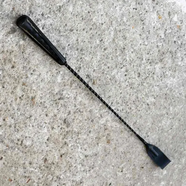 Cravache en fibre de verre gainée de nylon, claquette et dragonne en cuir.