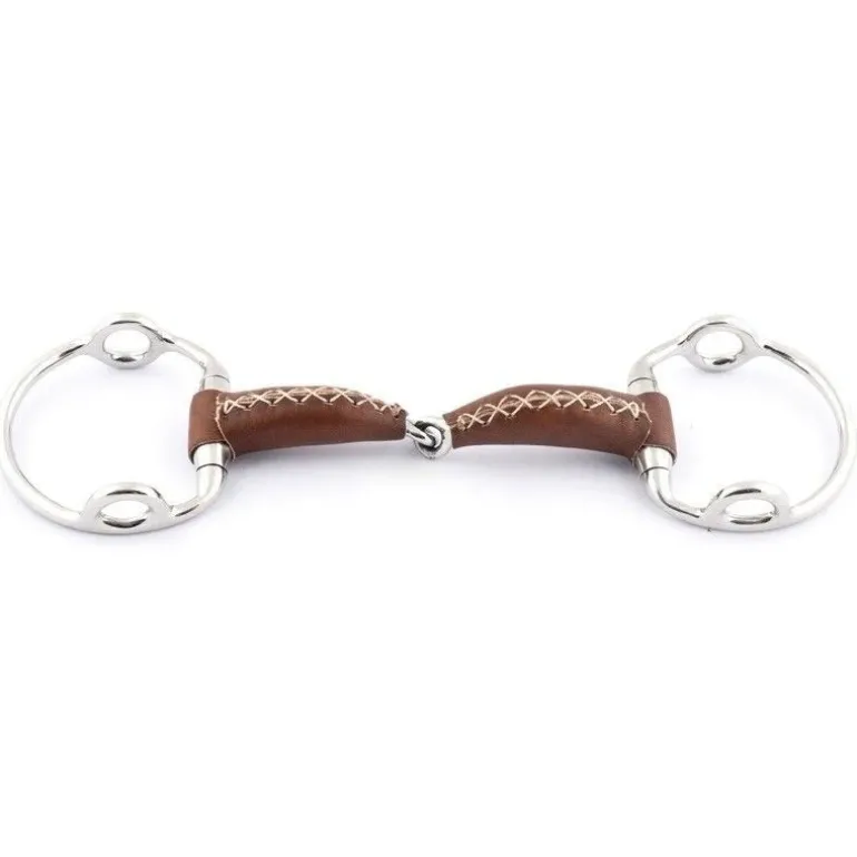 Ce mors nécessite des montants spéciaux et peut être utilisé en direct, avec alliances ou en quatre rênes. Le canon gainé cuir permet d’éviter un contact trop froid dans la bouche du cheval et de lui apporter un peu plus de confort.