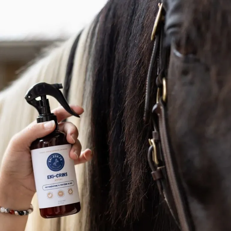 Le Soin Crinière d’Eki-Zen représente l’excellence en matière de soins capillaires équins. Développé spécifiquement pour les chevaux, ce traitement intensif répond aux besoins des crins soumis à des contraintes importantes : tressages répétés, conditions climatiques extrêmes, stress de la performance. Un véritable masque pour les crins de votre cheval !
