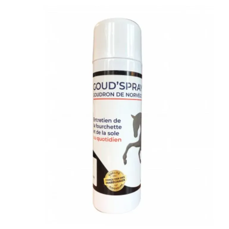 Grâce à son action hydrofuge et antiseptique, le Goud’Spray permet de lutter efficacement contre les nécroses de la sole, de la fourchette et de la ligne blanche. Son format spray le rend très facile d’utilisation et il convient tout à fait pour un usage quotidien.