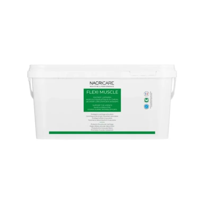 Nacricare Flexi Muscle est formulé pour les équidés – Tenir hors de portée des enfants – Bien refermer après usage – Conserver dans un endroit sec à température ambiante et à l’abri de la lumière.