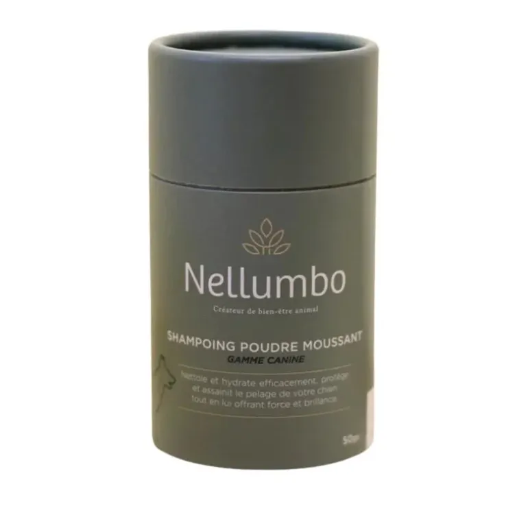 Caractéristiques du shampoing poudre moussant pour chien Nellumbo